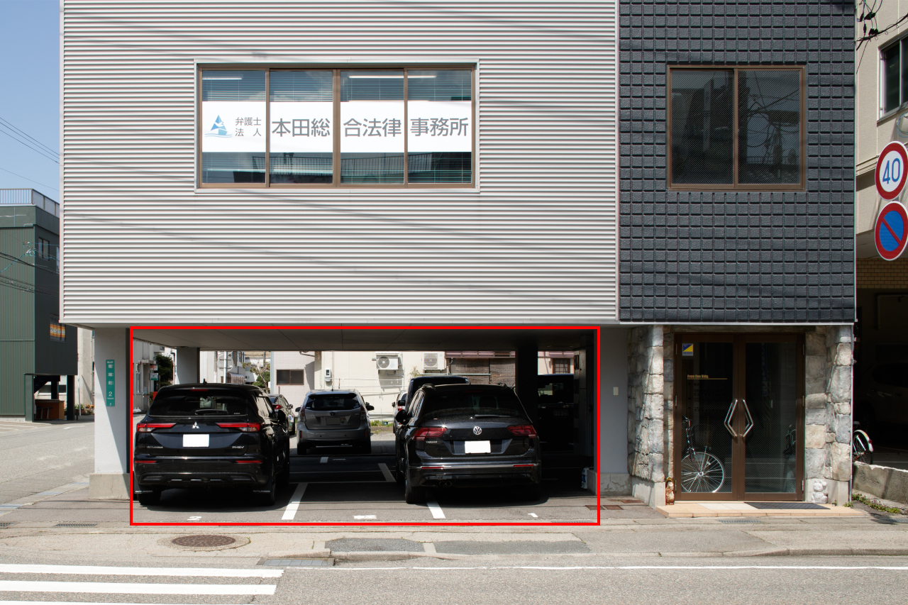 事務所の1階が駐車場です。空いているすべての箇所がご利用いただけます。